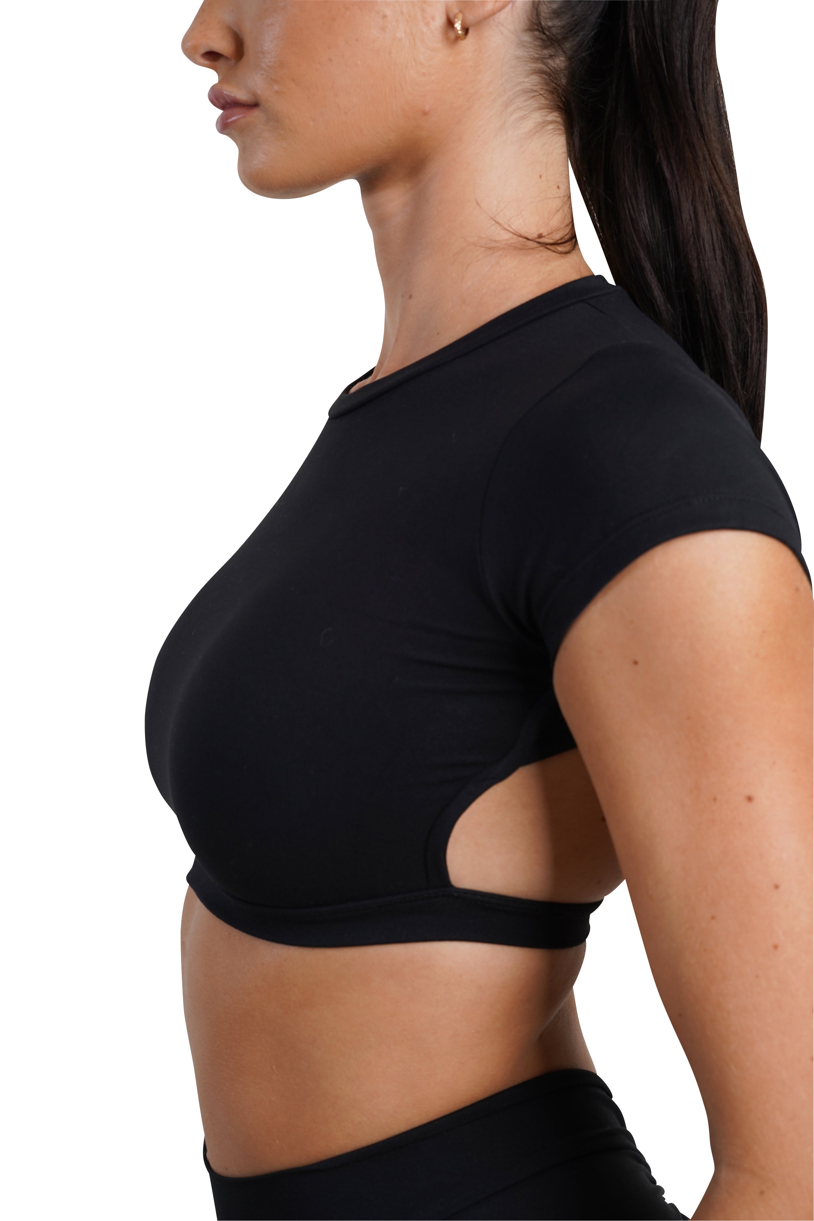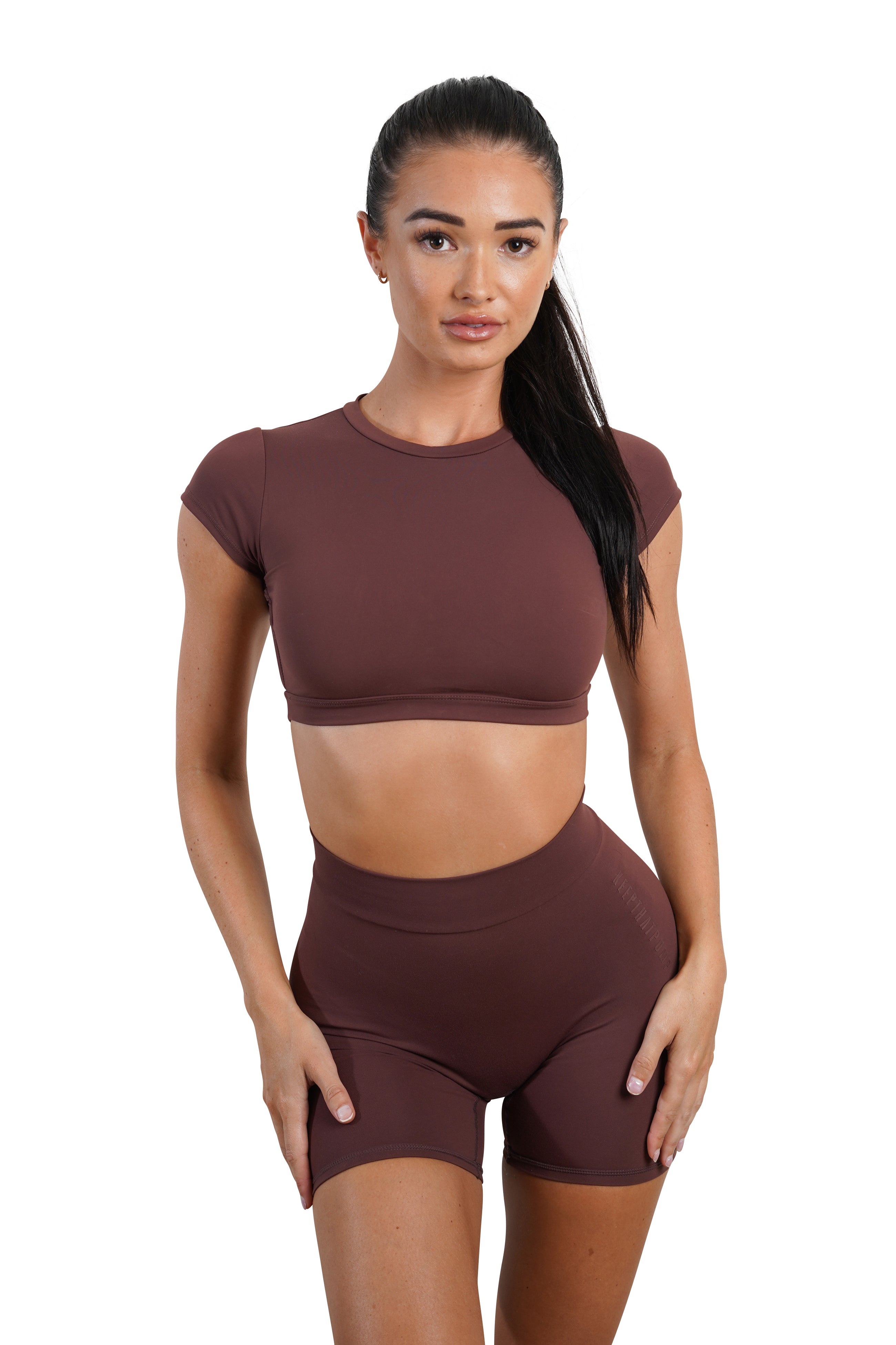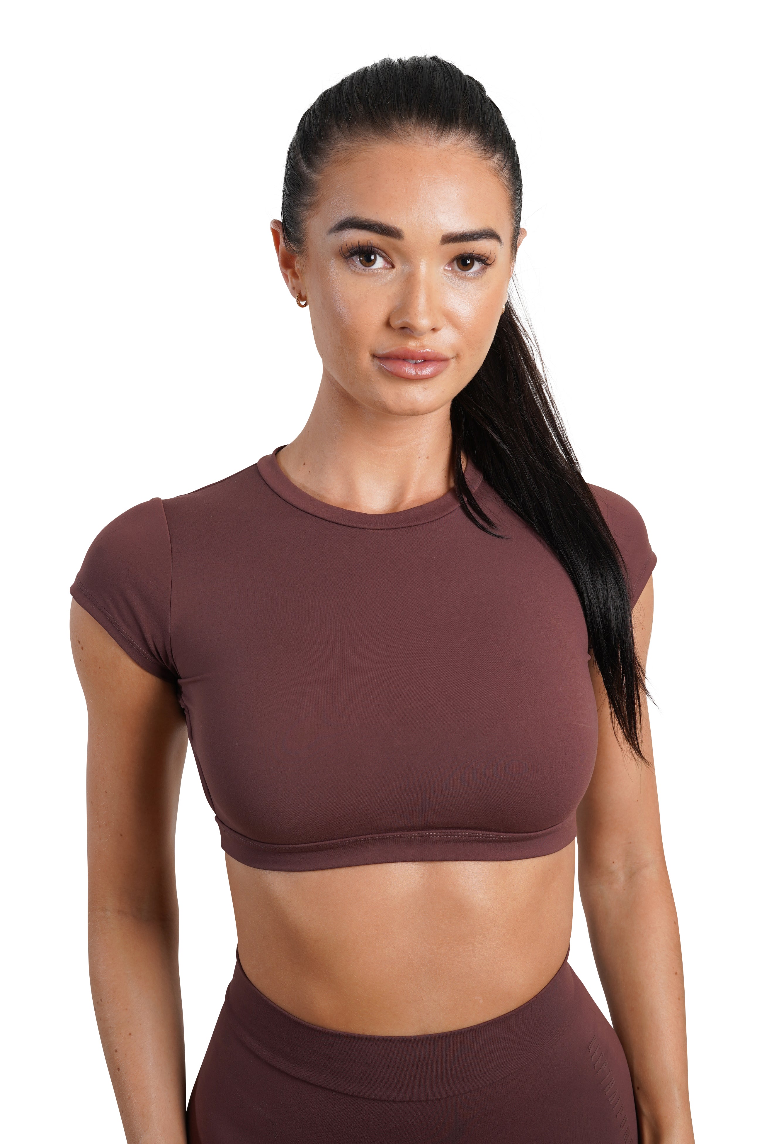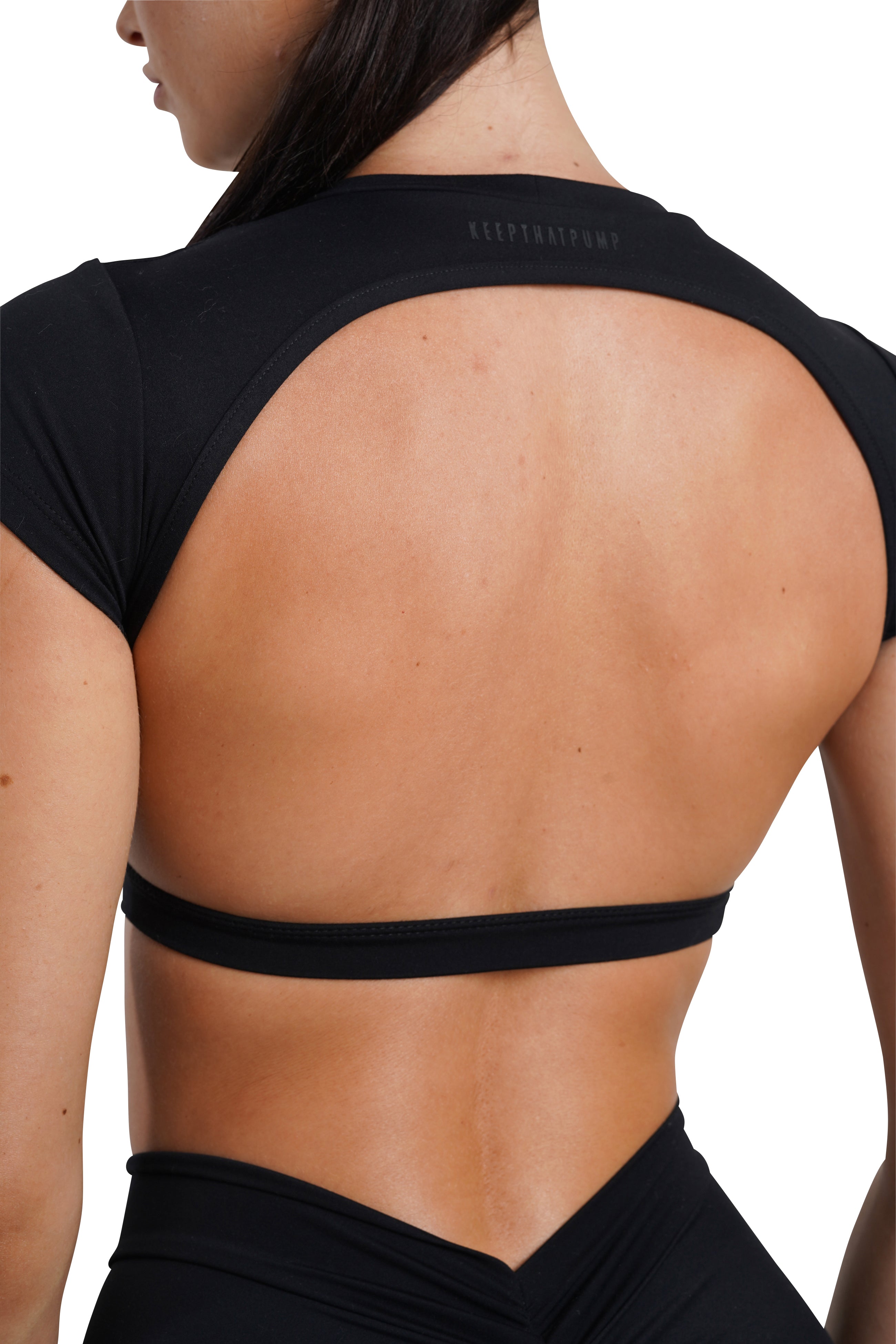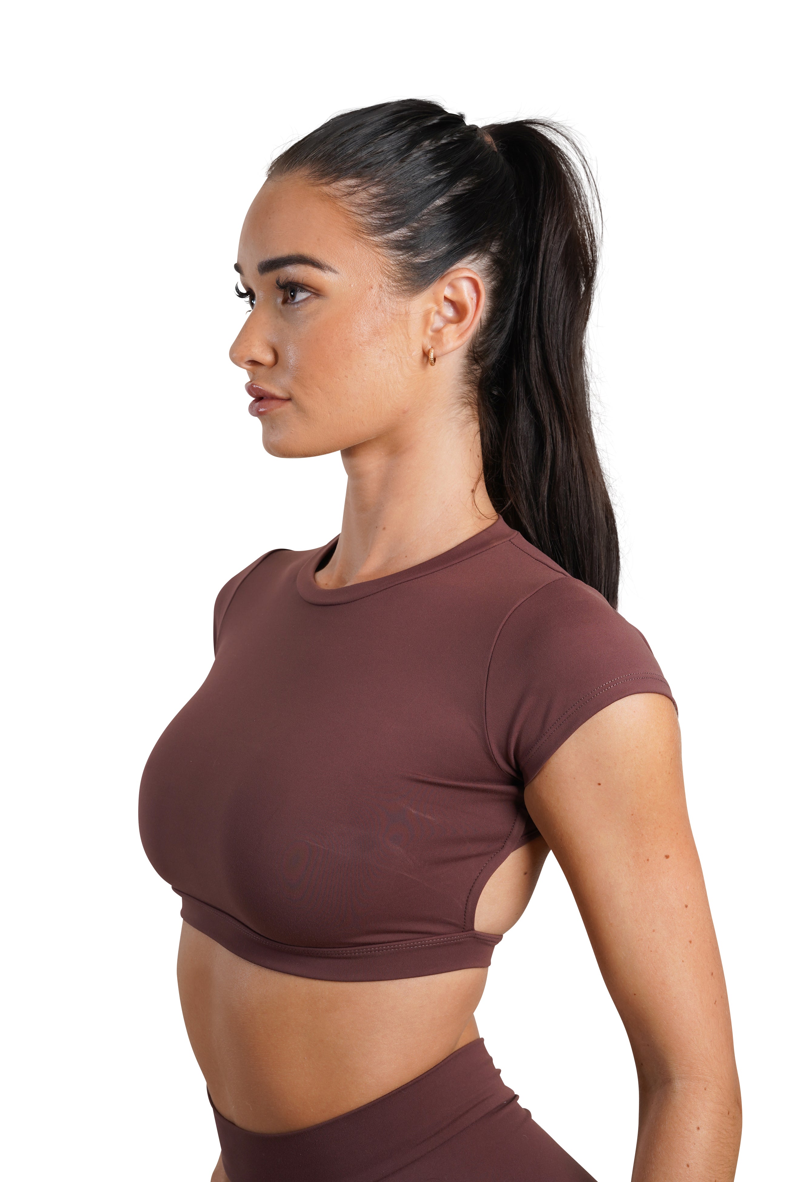 OPEN BACK CROP TEE - BROWN