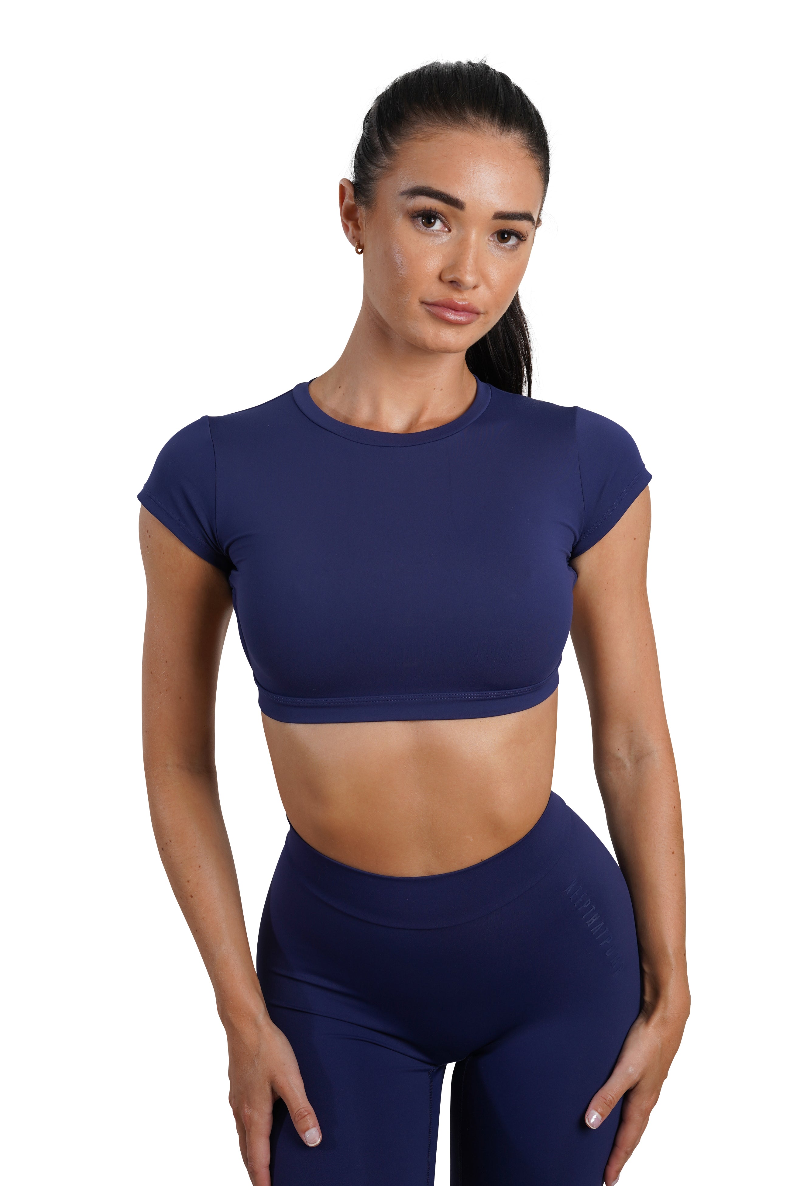 OPEN BACK CROP TEE - NAVY