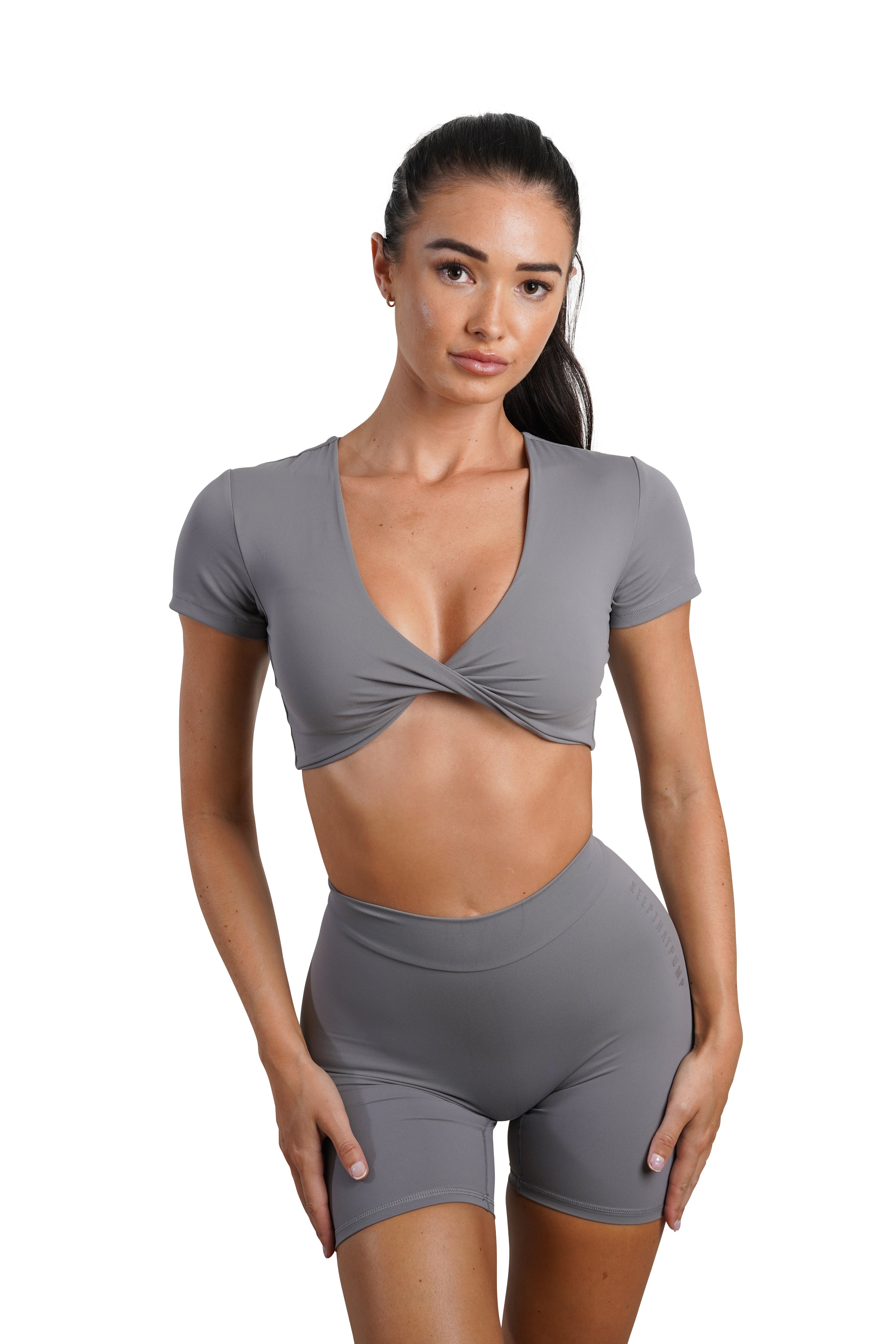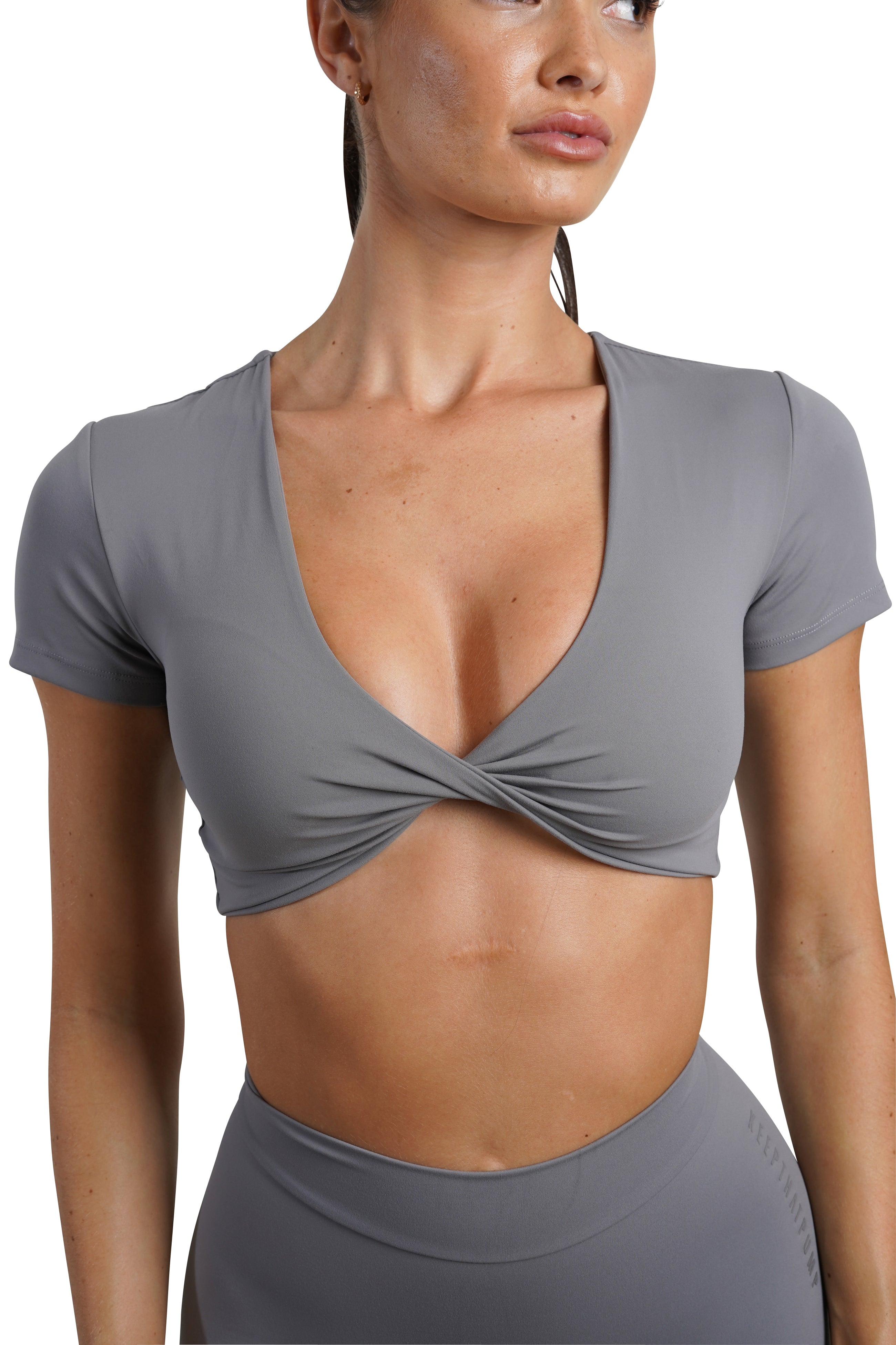 SHORT SLEEVE TWIST TEE - GREY