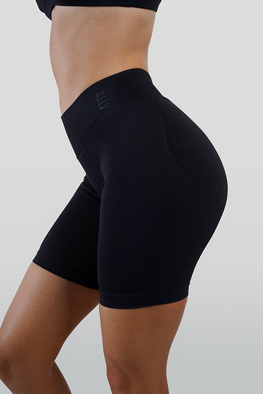 RECOIL HIGH WAIST SCRUNCH SHORTS - BLACK