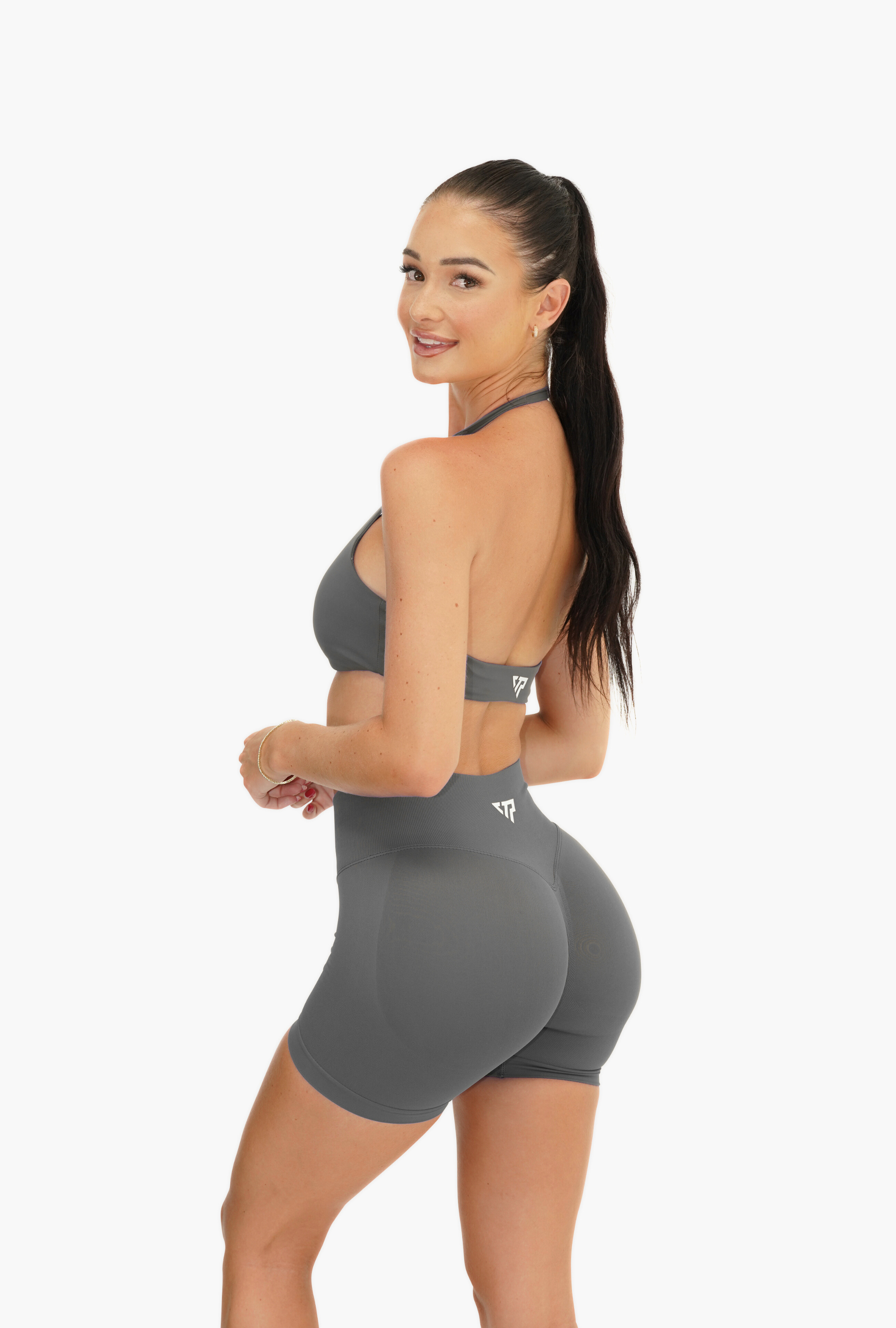 RECOIL HIGH WAIST SCRUNCH SHORTS - STORM