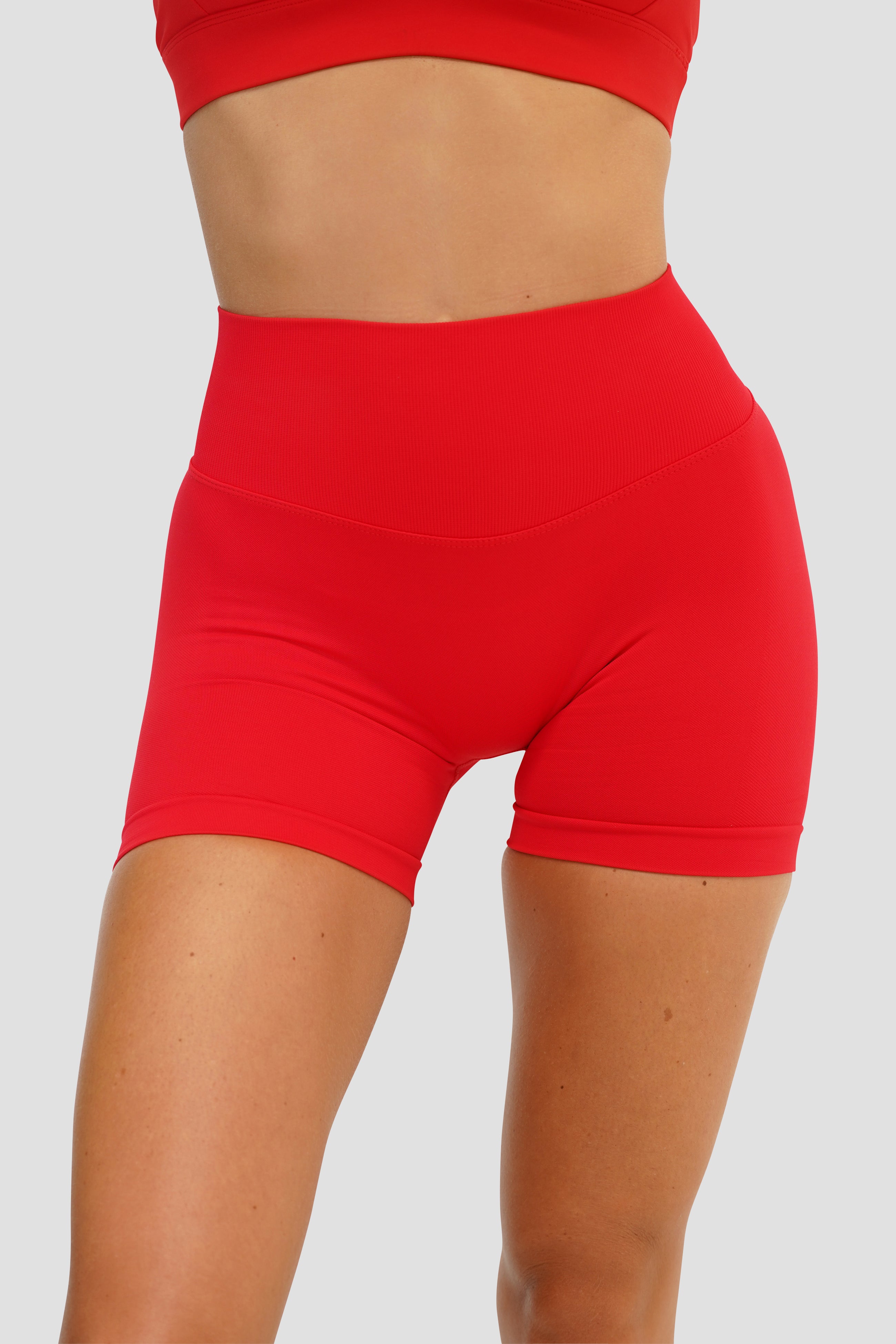RECOIL HIGH WAIST SCRUNCH SHORTS - RED