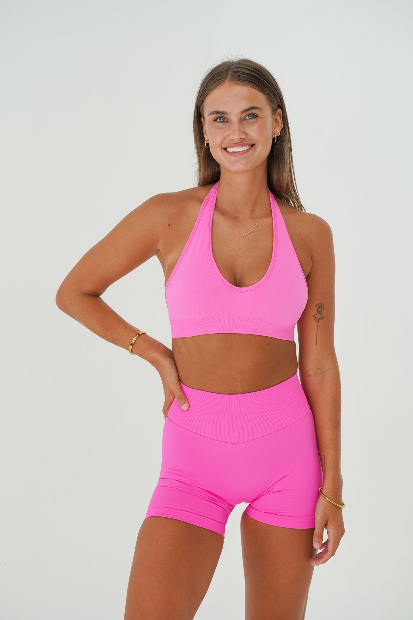 RECOIL HIGH WAIST SCRUNCH SHORTS - NEON PINK