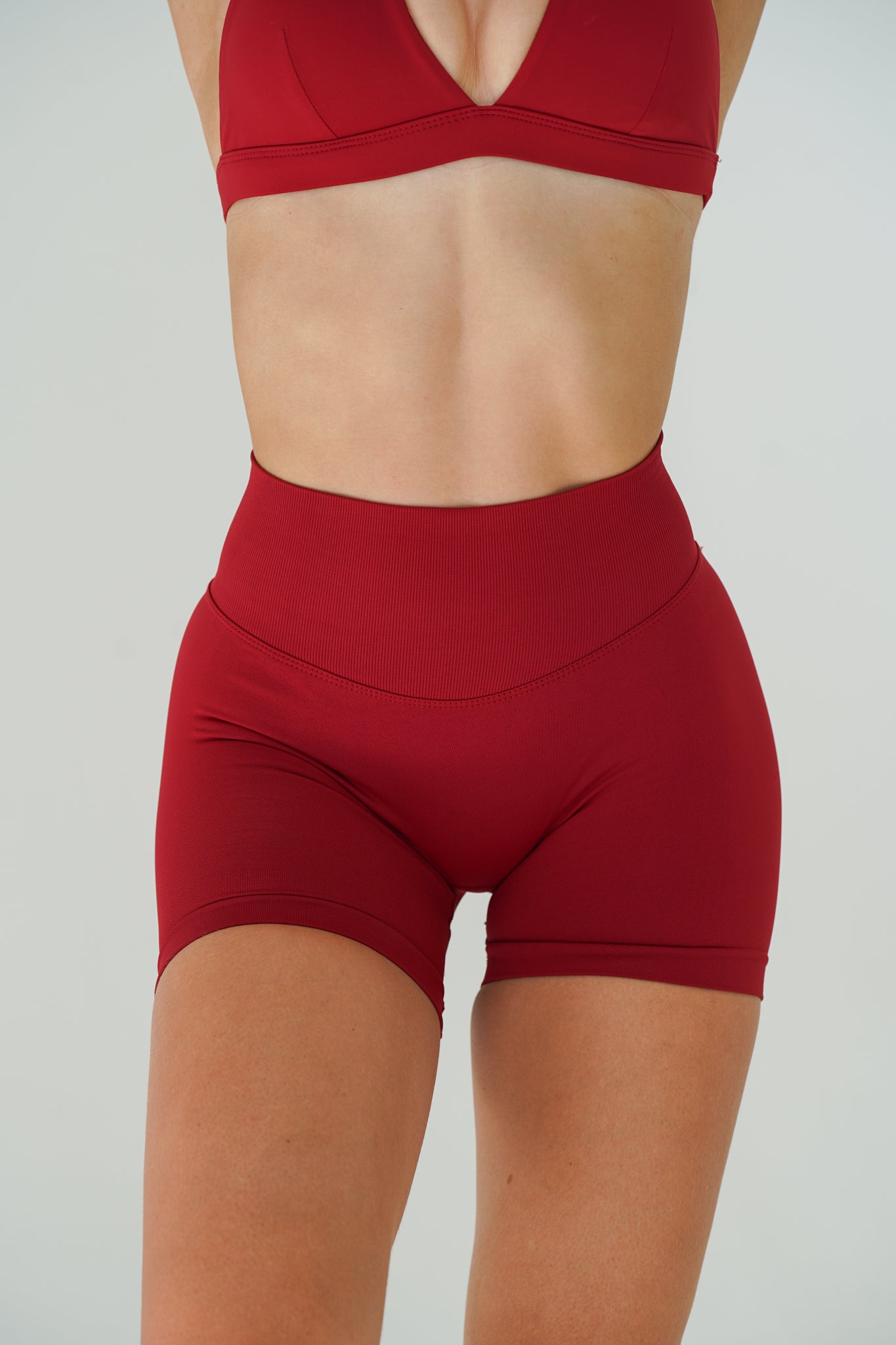 RECOIL HIGH WAIST SCRUNCH SHORTS - DARK RED