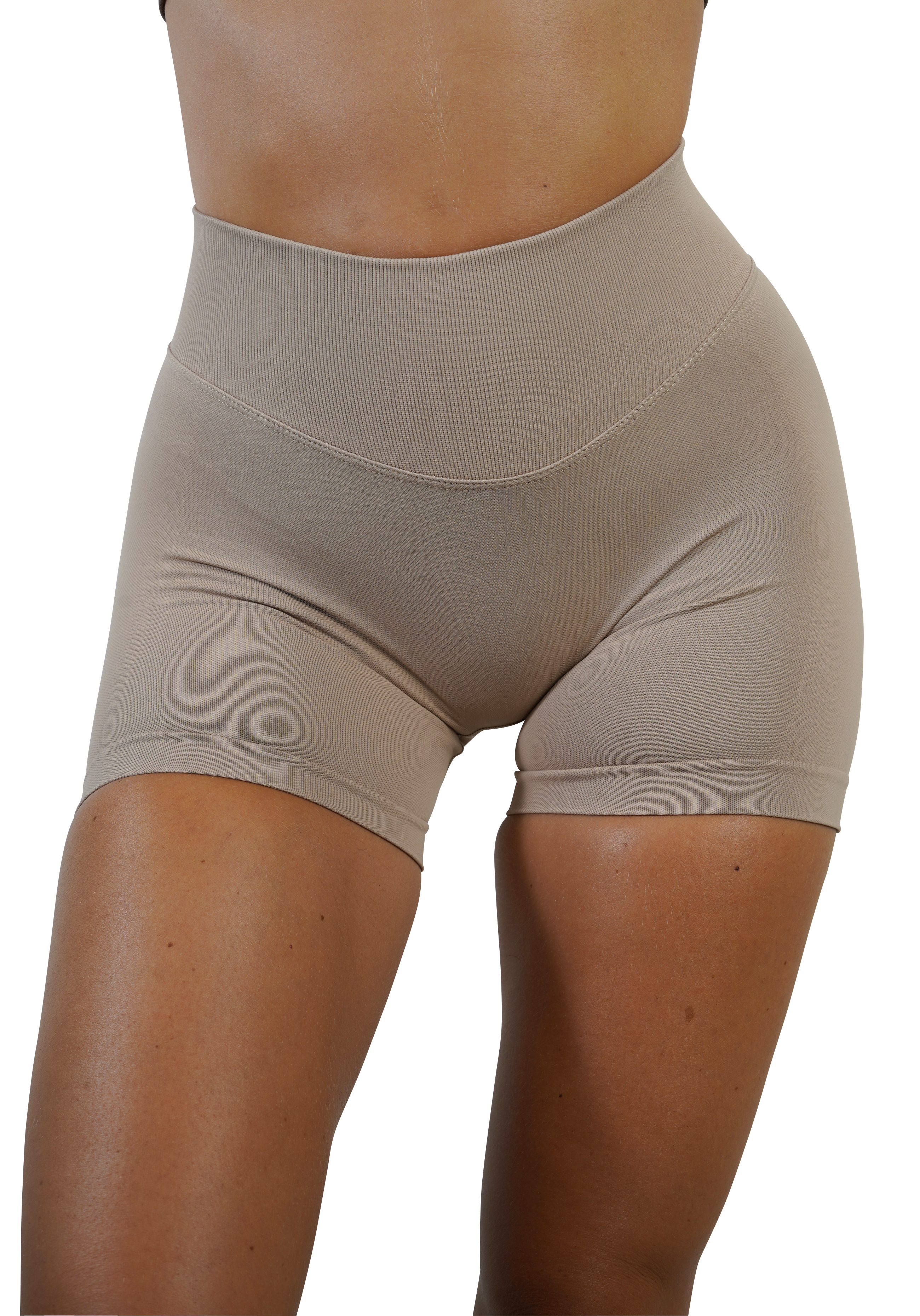 RECOIL HIGH WAIST SCRUNCH SHORTS - LATTE