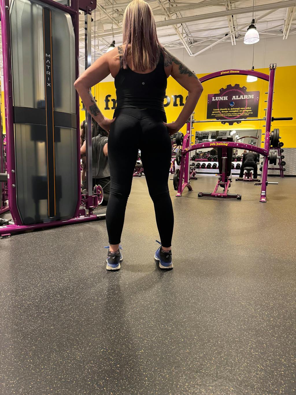 sarsha d. I have never found leggings flatter on me nor would i ever wear leggings with a single sports bra- but these leggings changed the game for me I love the v back it’s so flattering.