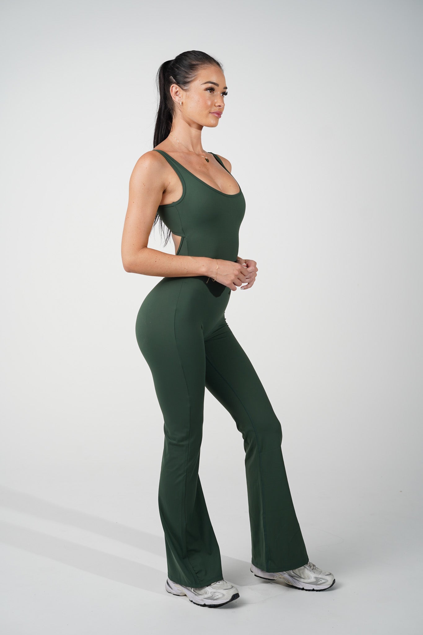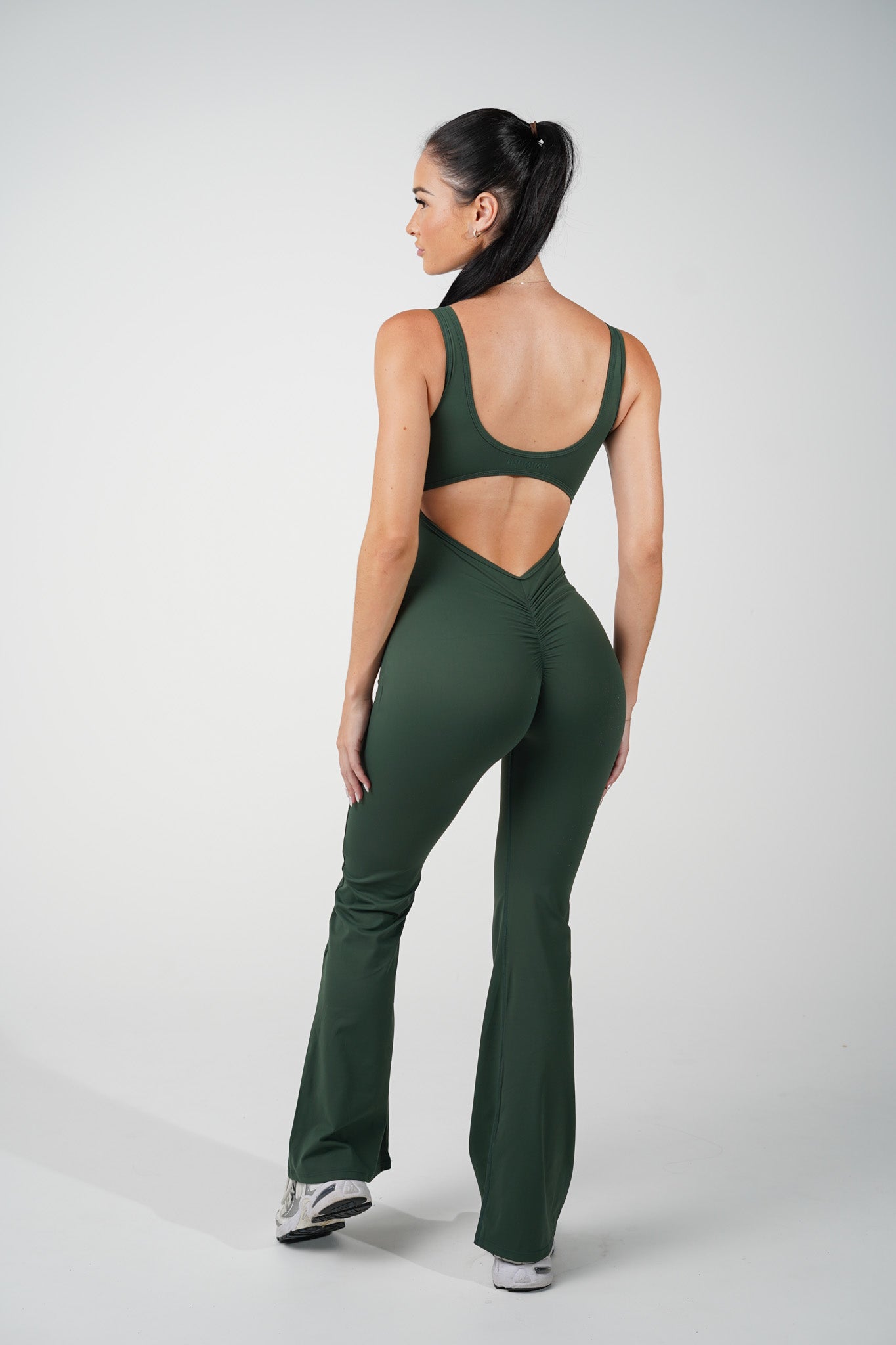 AMORA FLARED JUMPSUIT - FOREST GREEN