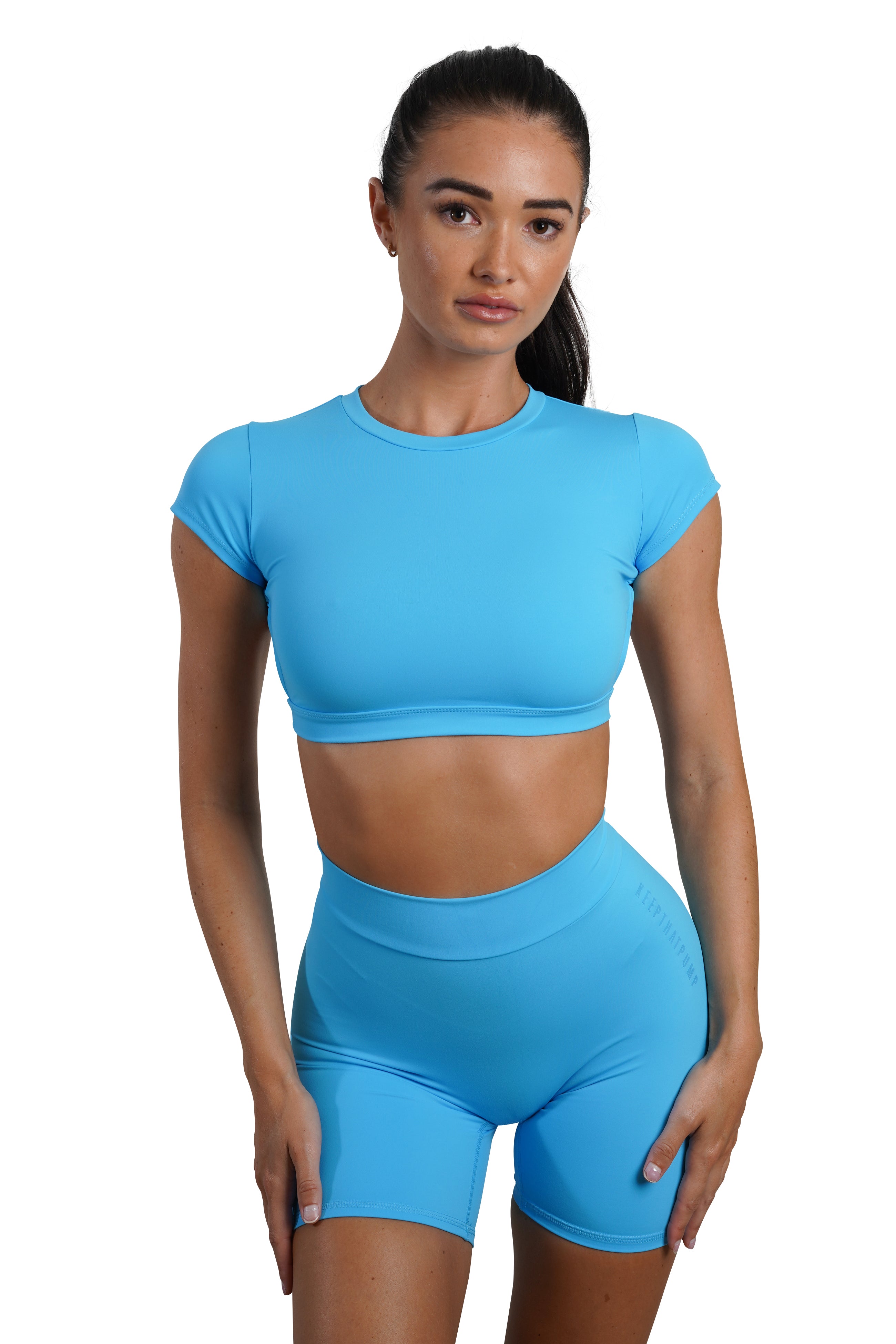 M.nicole Fits like a glove & love it gives a bit more coverage then a crop but still shows your back.