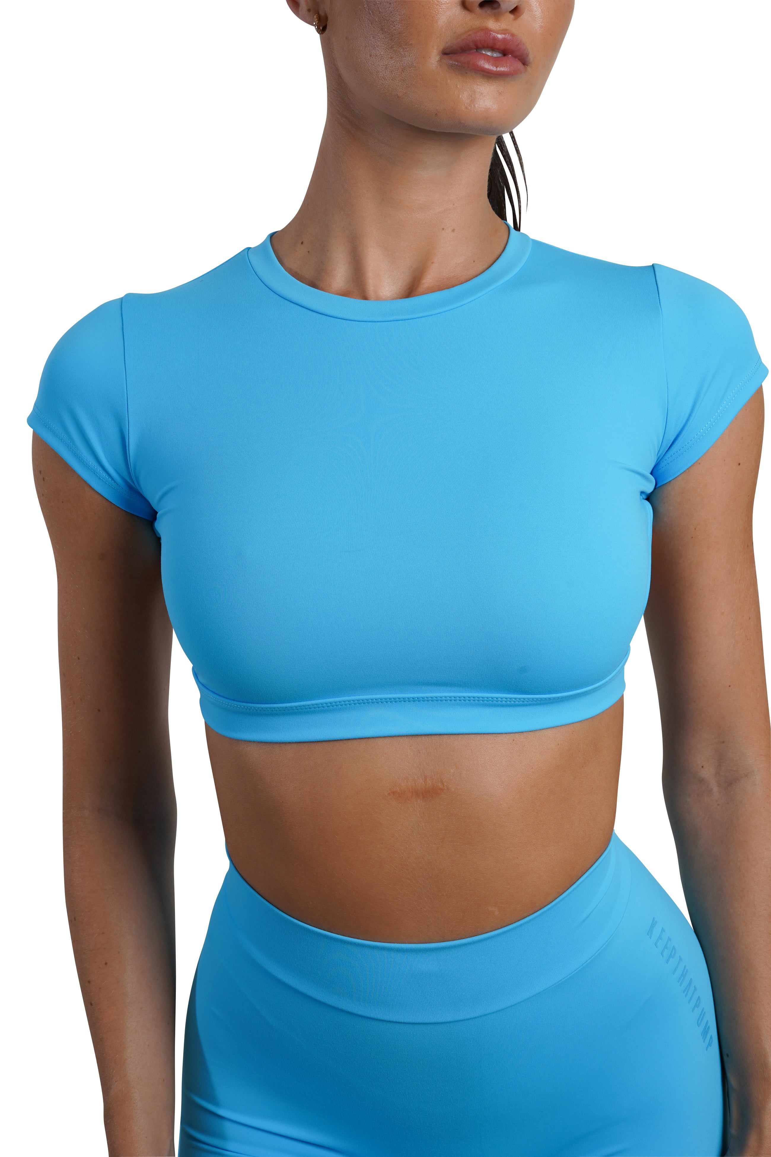 Kaylinn R. Love this top! The open back detail makes it super cute and breathable for workouts. Fits true to size and the ice blue color is gorgeous.