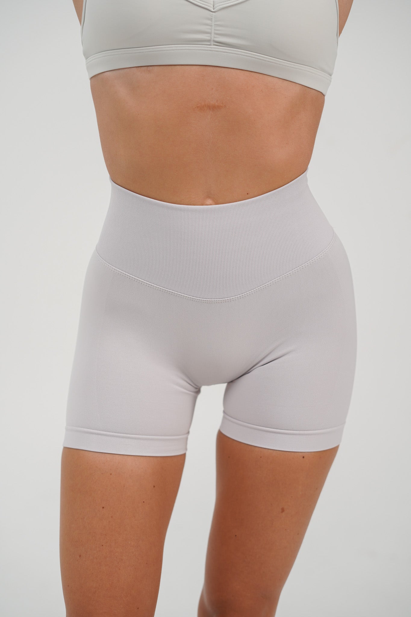 RECOIL HIGH WAIST SCRUNCH SHORTS - CLOUD GREY