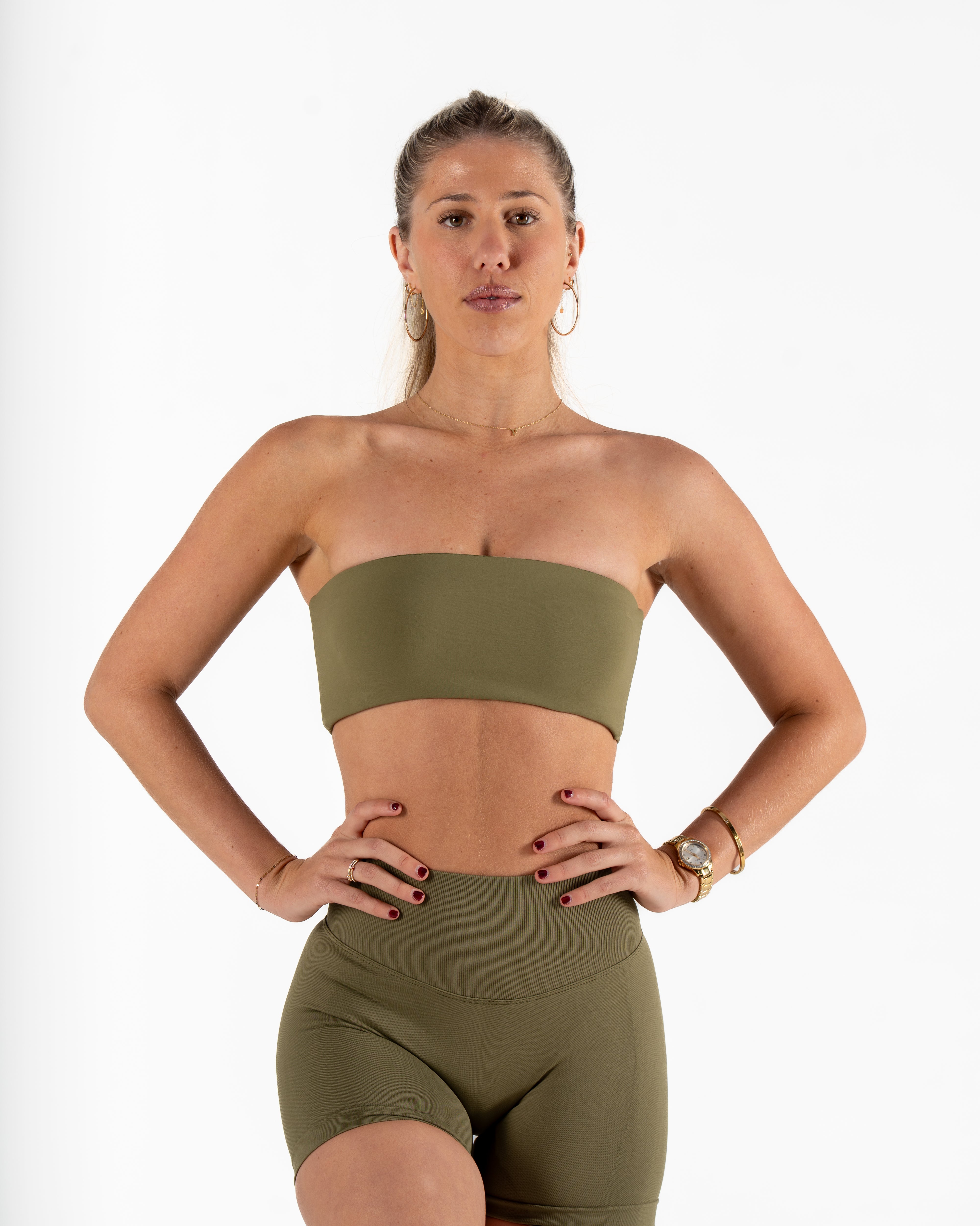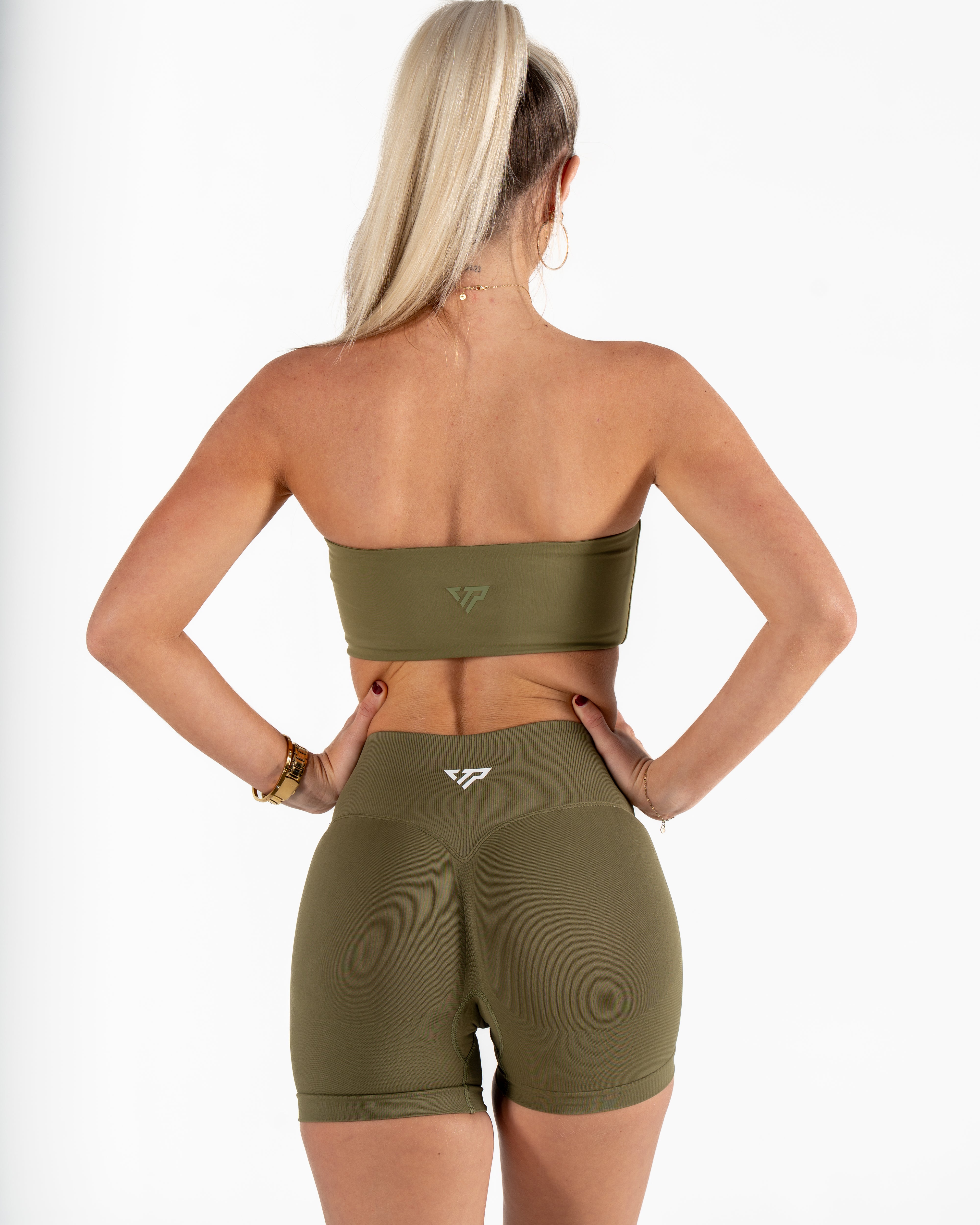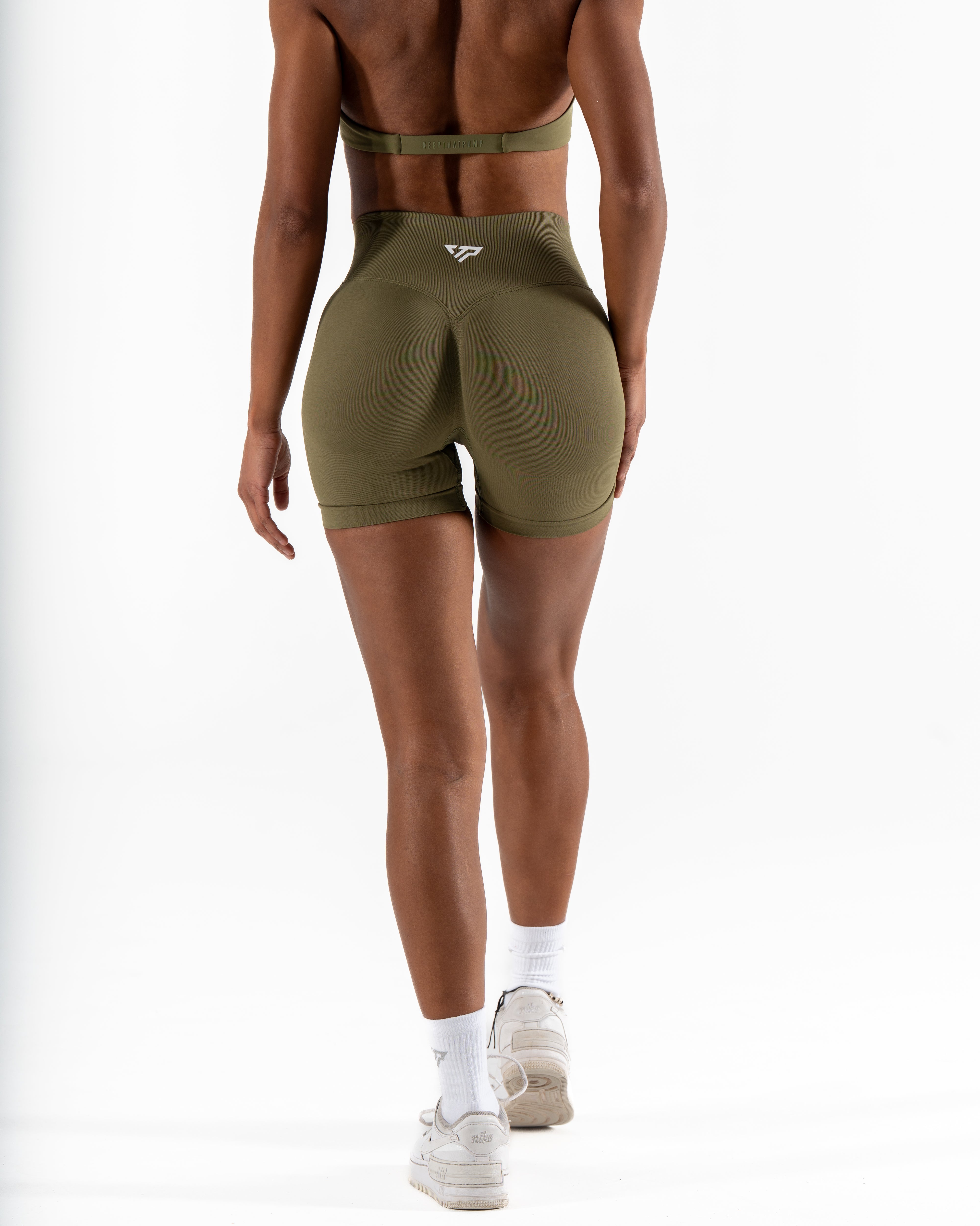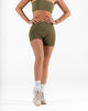 RECOIL HIGH WAIST SCRUNCH SHORTS - DARK KHAKI GREEN
