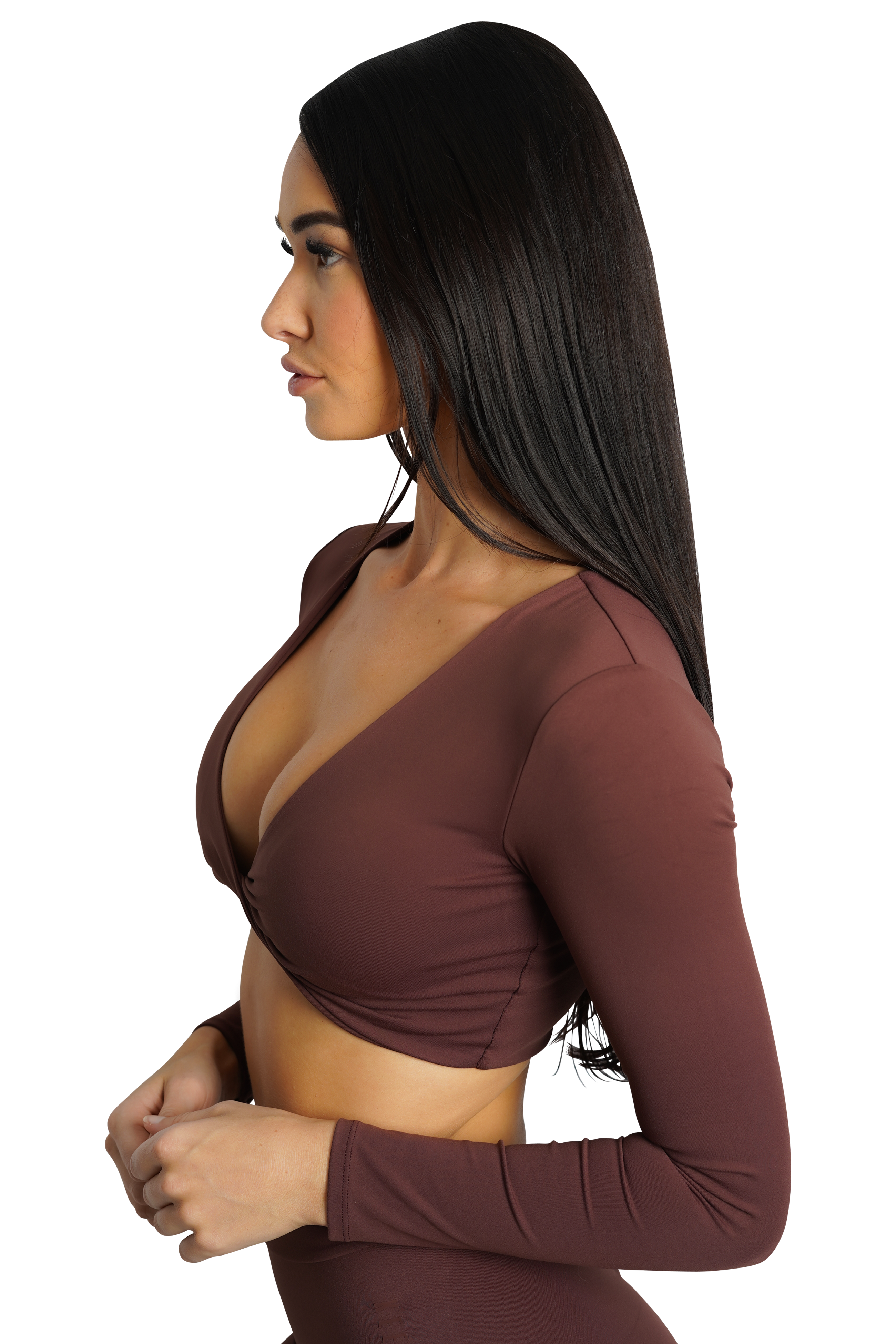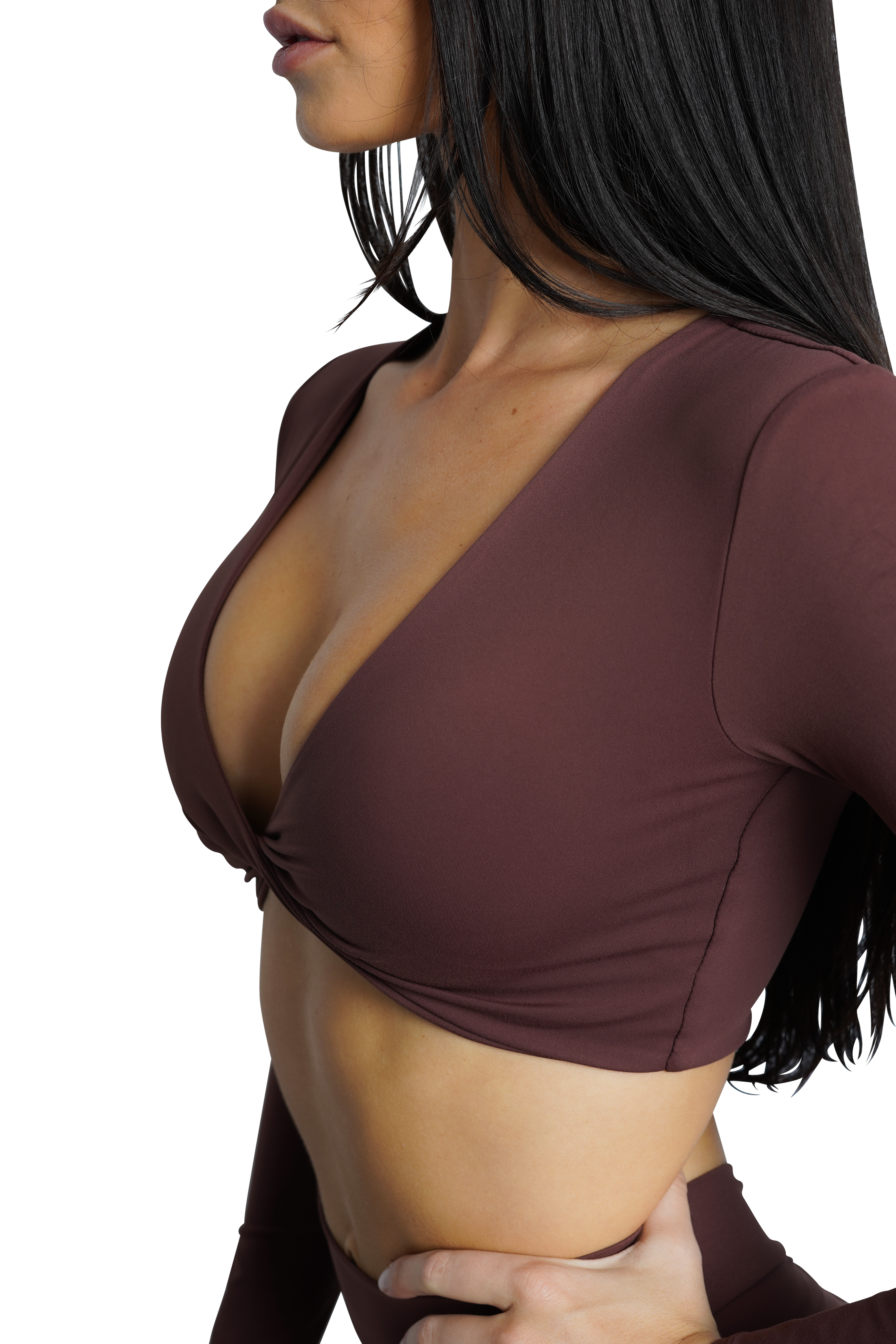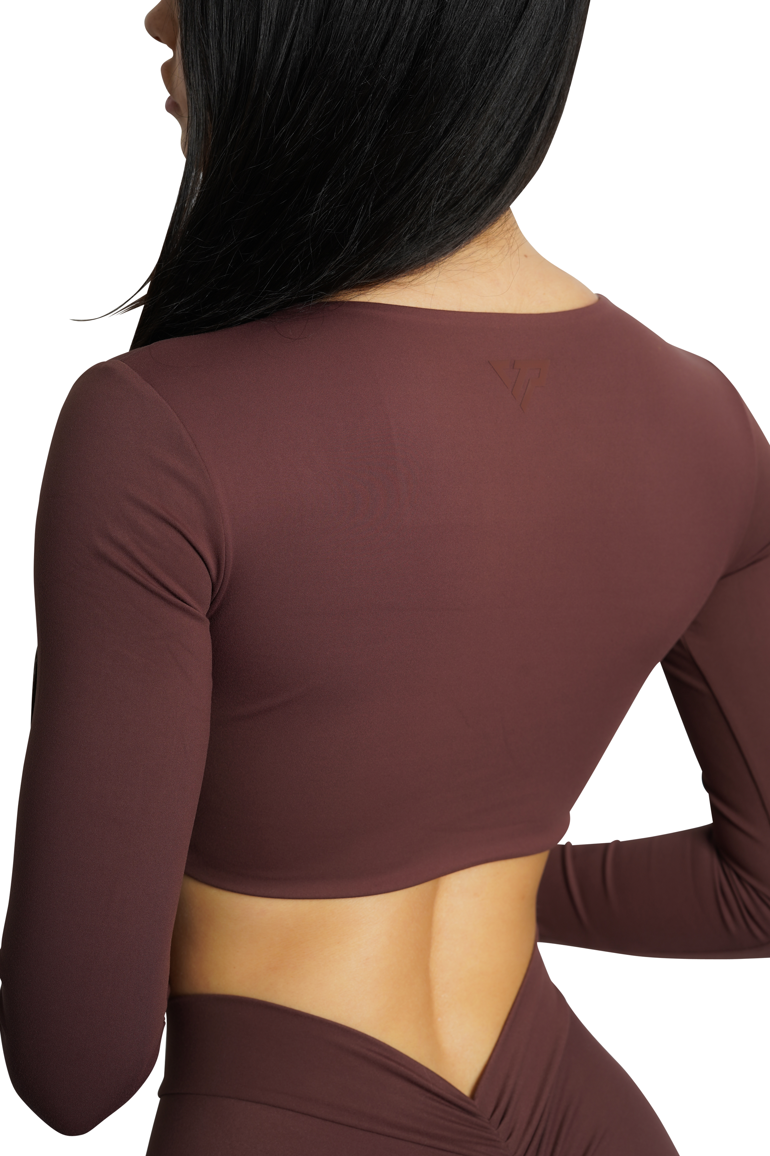 SCULPT LONG SLEEVE TWIST TOP - BROWN