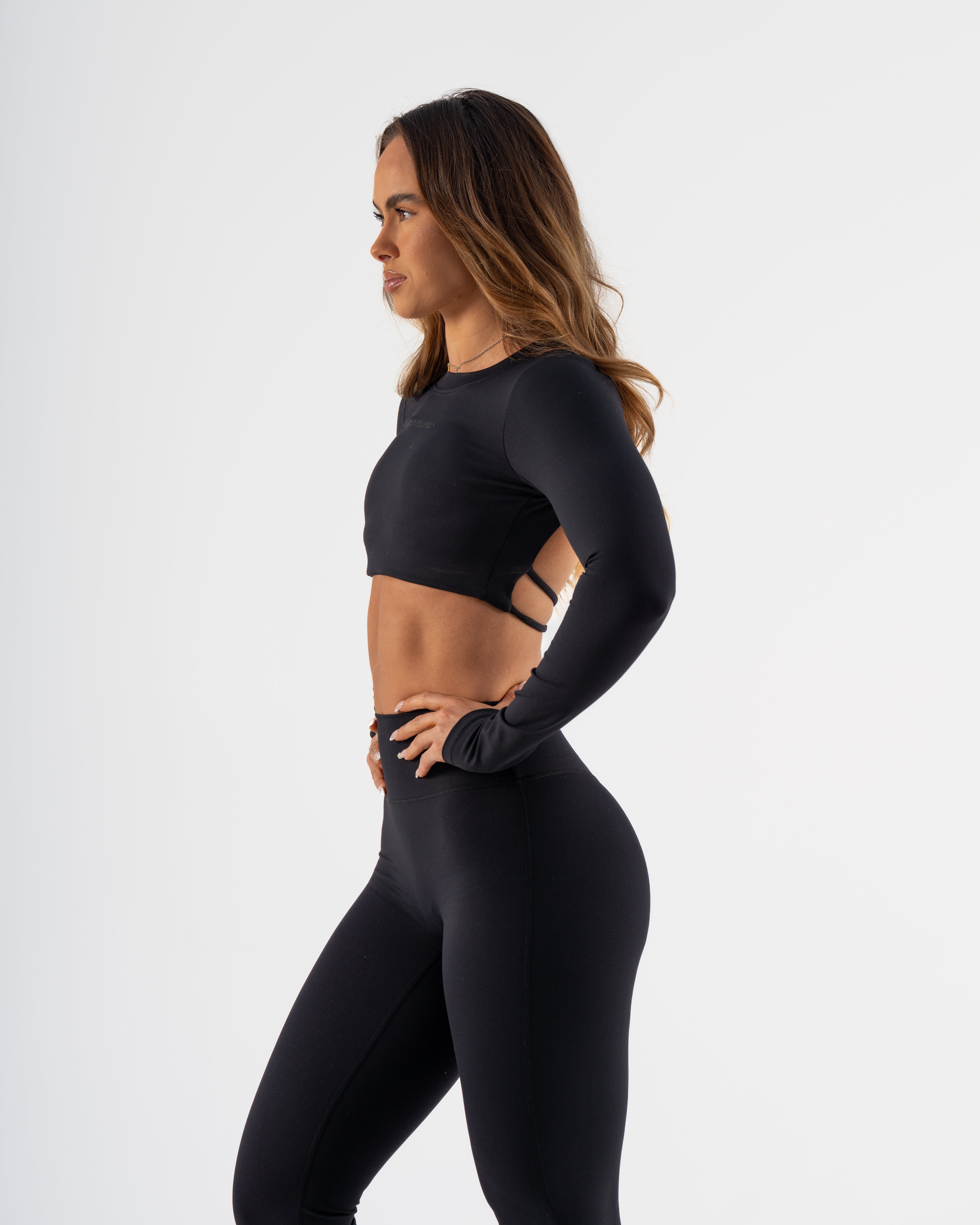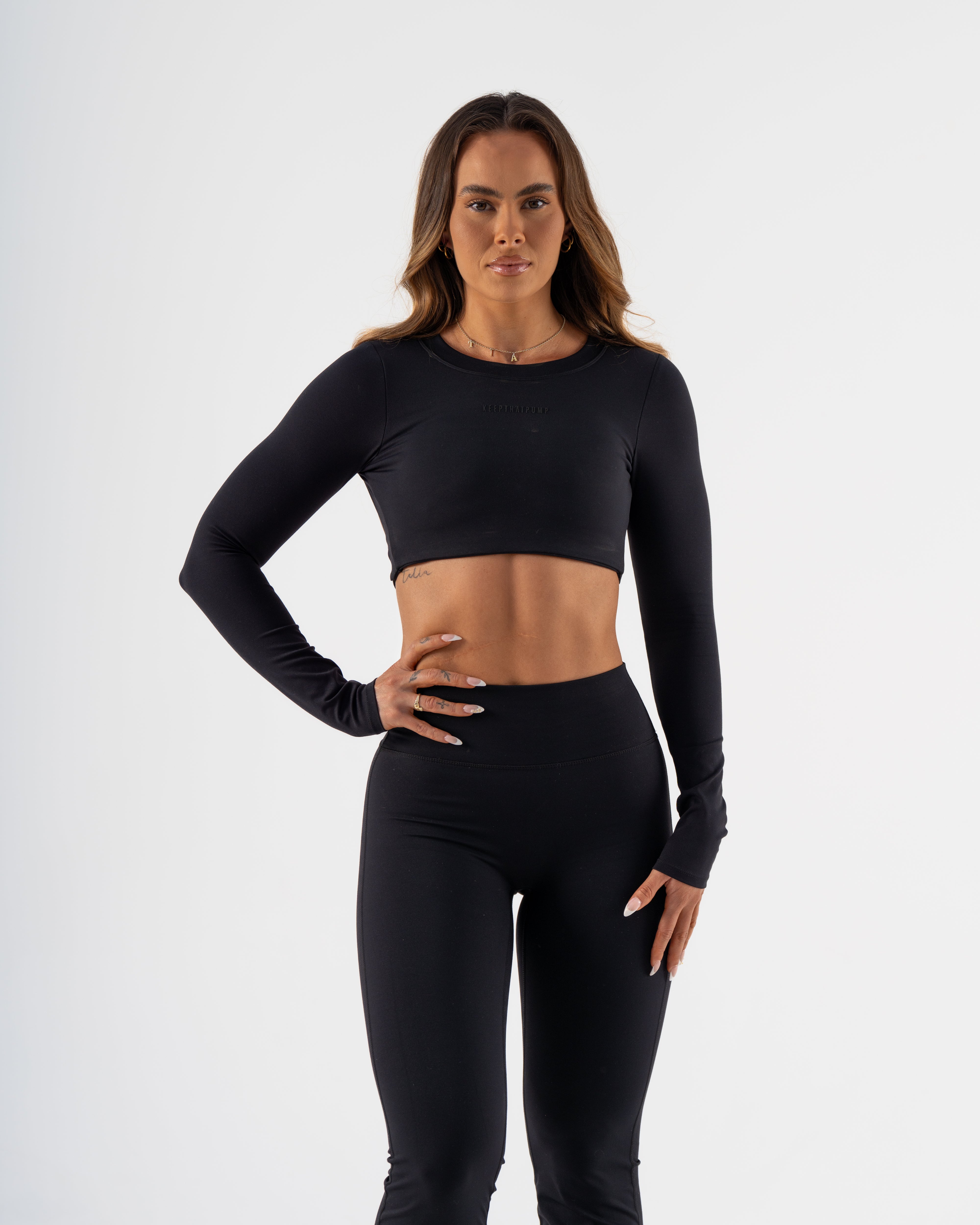 SIGNATURE LONG SLEEVE CROP - BLACK