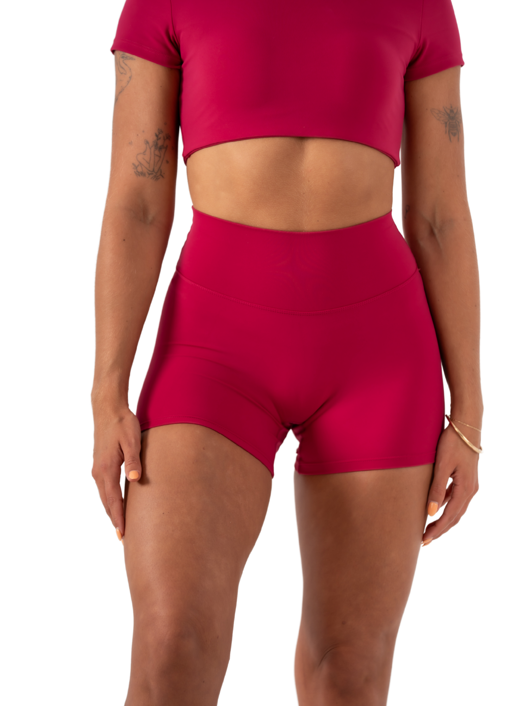 SLEEK SCRUNCH SHORTS - CRANBERRY